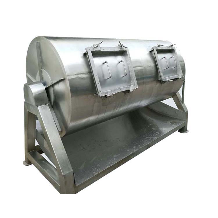 主要是將加工的魷魚絲、肉類制品等原料進(jìn)行腌制處理。在真空狀態(tài)下,物料通過螺旋槳葉的強(qiáng)制循環(huán)揉壓、摔打、靜置,加速鹽水分布和吸收,促進(jìn)肌纖維蛋白的溶解和提取,提高產(chǎn)品質(zhì)量,降低蒸煮損失,縮短腌制時(shí)間,改善肉品品質(zhì)。將產(chǎn)品放在真空狀態(tài)內(nèi),可提高調(diào)味品進(jìn)入肉品的速度,并大限度的保持肉內(nèi)的水分是在真空狀態(tài)下,通過筒體轉(zhuǎn)動(dòng)進(jìn)行滾揉,使肉及添加劑溶為一體,以達(dá)到肉質(zhì)鮮嫩,出品率高的目的。