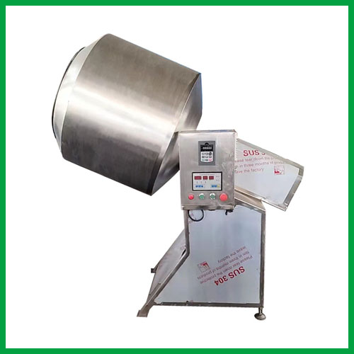 采用減速電機(jī),齒輪傳動(dòng),使物料不破碎,自動(dòng)攪拌;拌料均勻,操作方便,產(chǎn)量高;滾桶的轉(zhuǎn)速和傾斜度都可以調(diào)節(jié),給粉量也可以控制;可以對(duì)任何食品進(jìn)行調(diào)味、拌料。